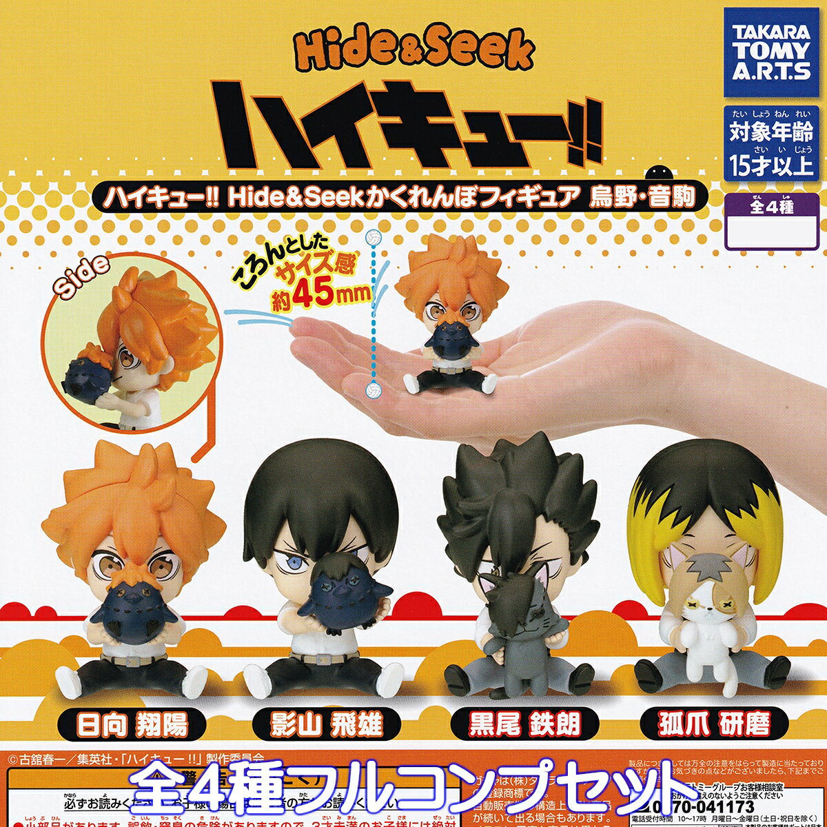 | ハイキュー!! Hide&Seekかくれんぼフィギュア 烏野・音駒 タカラトミーアーツ 【全4種フルコンプセット】 Haikyu!! アニメグッズ フィギュア ガチャガチャ カプセルトイ【即納 在庫品】【数量限定】【フルコンプリート】 3,899円 各高校の動物マスコットなどで顔をかくして、キャラクターたちがかくれんぼをしている「ハイキュー!! Hide&Seekかくれんぼフィギュア 烏野・音駒」が、カプセルトイで新登場です。 約4.5cmのちょうど良い手のひらサイズで、可愛いデフォル... |