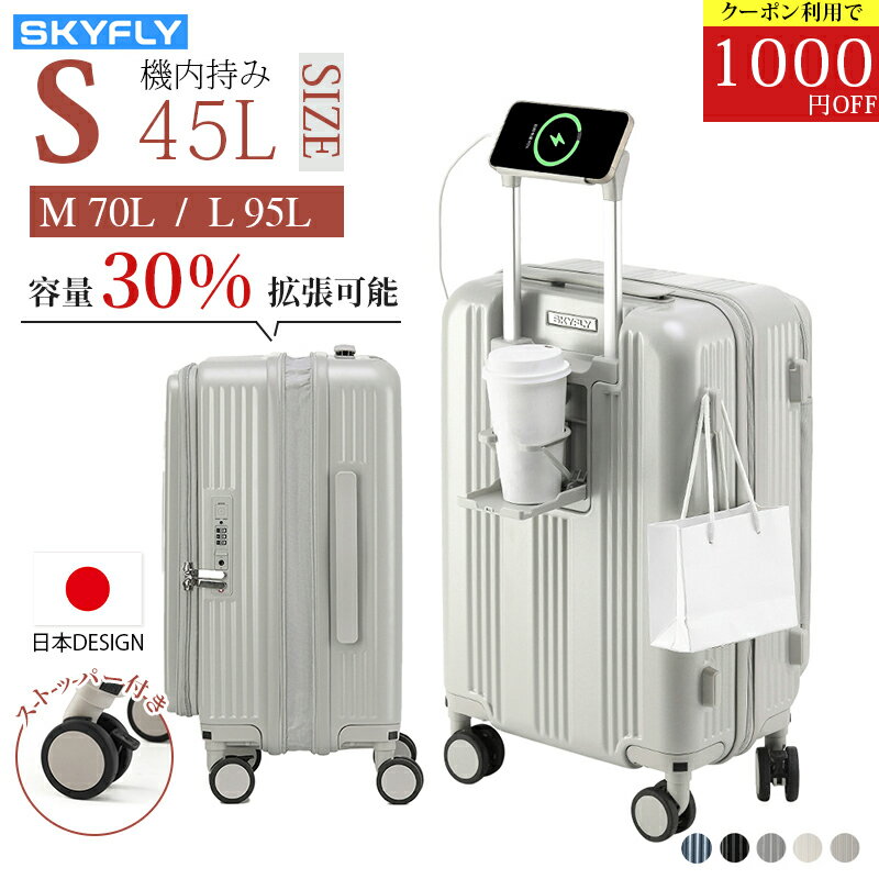★P10+1000円OFF~23:59まで★新色追加★【SKYFLY公式】スーツケース Sサイズ 機内持ち込み Mサイズ 横開き 拡張可能 大容量 丈夫 SKYFLY 軽量 高耐久 USB Type-Cポート 多機能 キャリーバッグ TSAロック 静音キャスター TPE TSAロック カップホルダー 旅行