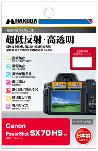 | 【ネコポス】 エツミ E-7251 プロ用ガードフィルム キヤノン PowerShot SX70 HS/SX60 HS用 757円 【製品特徴】■液晶画面をキズから守る保護用フィルムでキヤノン PowerShot SX70 HS、SX60 HSに切らずにそのまま貼れます■パナソニック電工製のファインティアラを使用したAR(低反射タイプ)フィルム■明るいところでも見やすく... |