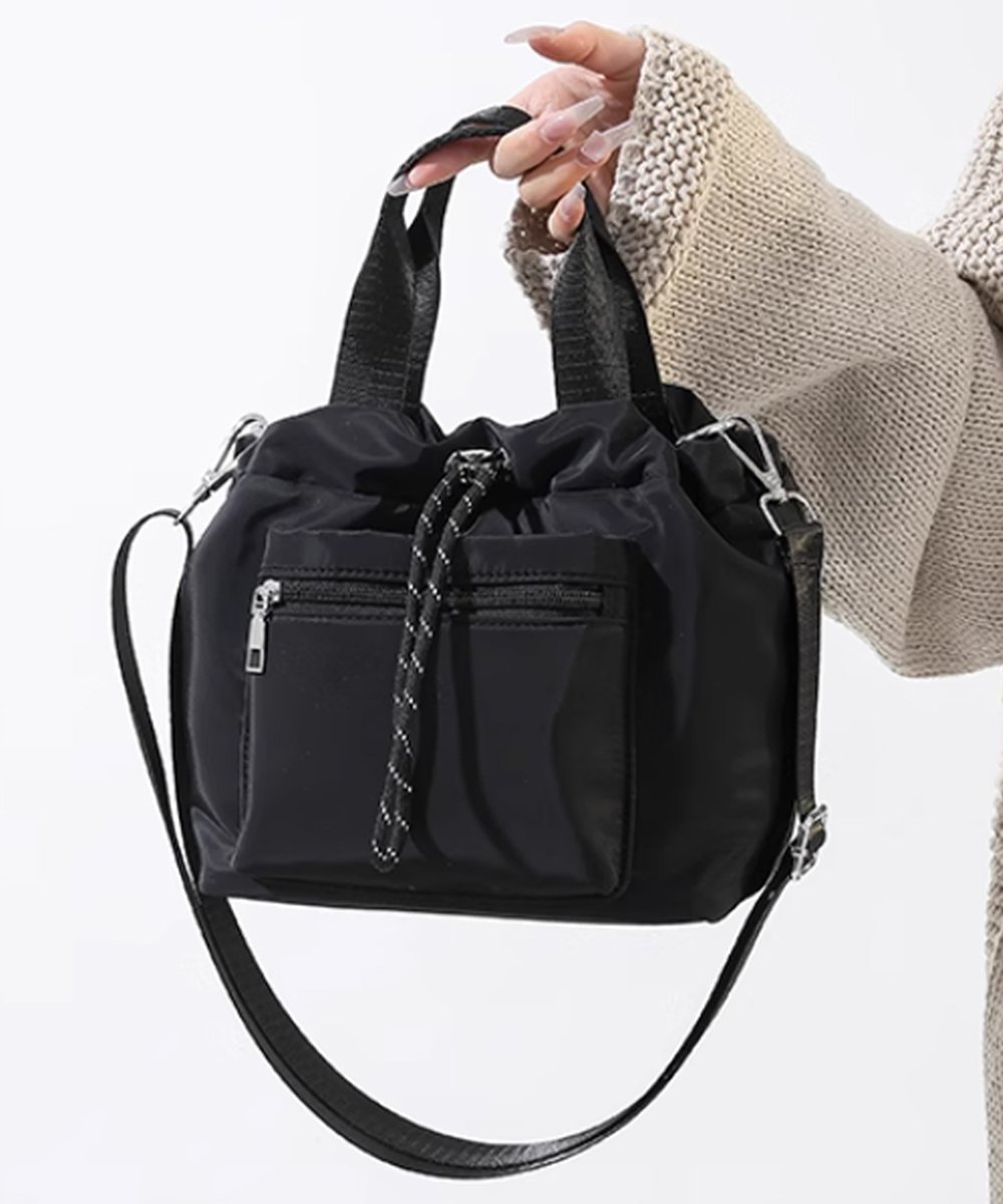 miniministore(ミニミニストア)巾着ショルダーバッグ レディース 小さめおしゃれミニショルダーバッグ軽量斜めがけカバン肩掛けバッグカジュアル3WAYナイロンバッグコンパクト旅行バッグ韓国風黒バッグトレンドミニバッグ軽い毎日使いた...